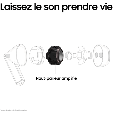 Equipé d’un nouveau haut-parleur 11mm et d’un diaphragme amélioré, les Galaxy Buds3 vous permettent d’écouter un son riche et adapté à tous les styles de musique.