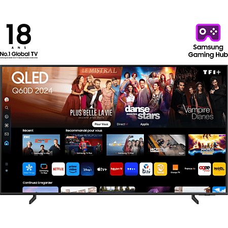 - Smart TV : Tizen OS (interface fluide, apps streaming, Gaming Hub, Samsung TV Plus gratuit), compatibilité Alexa, Bixby, Google Assistant.